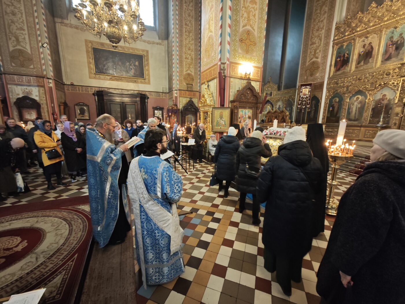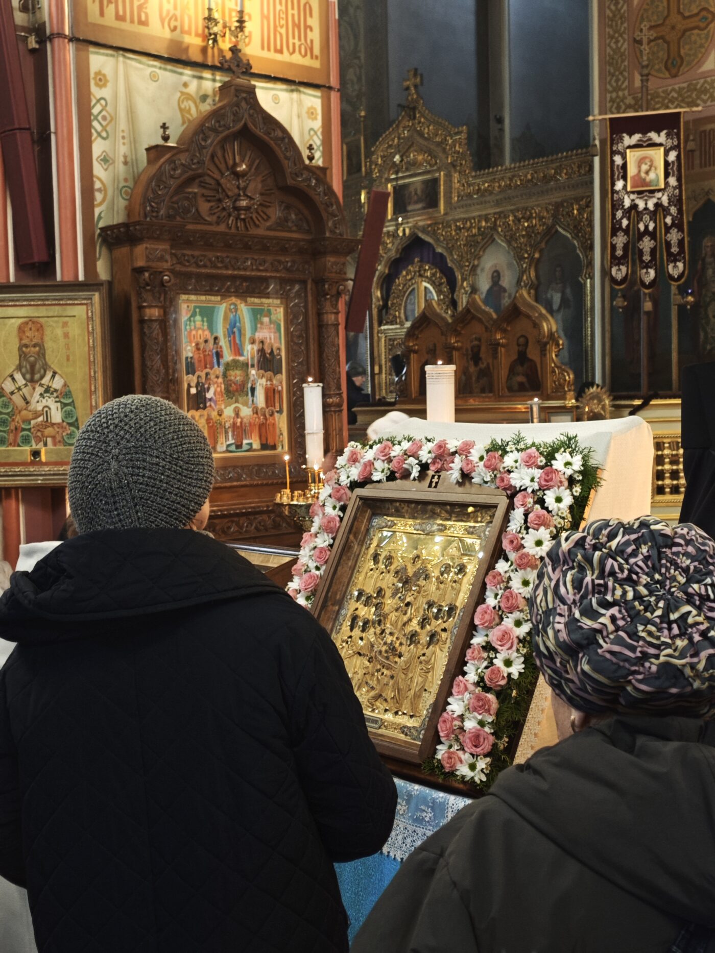 После Литургии Преждеосвященных Даров перед иконой Успения Божией Матери был отслужен молебен, который возглавил епископ Сергий.