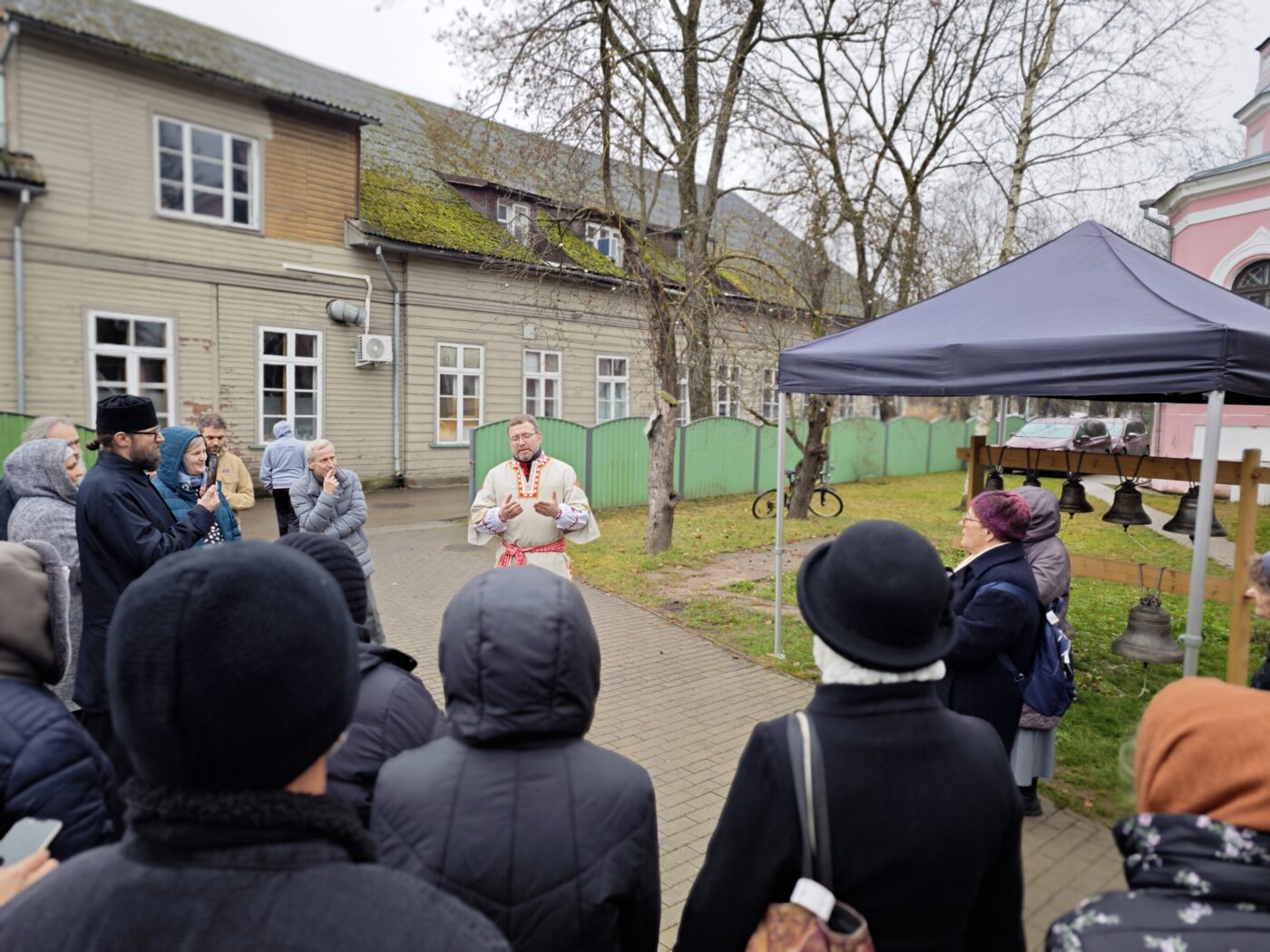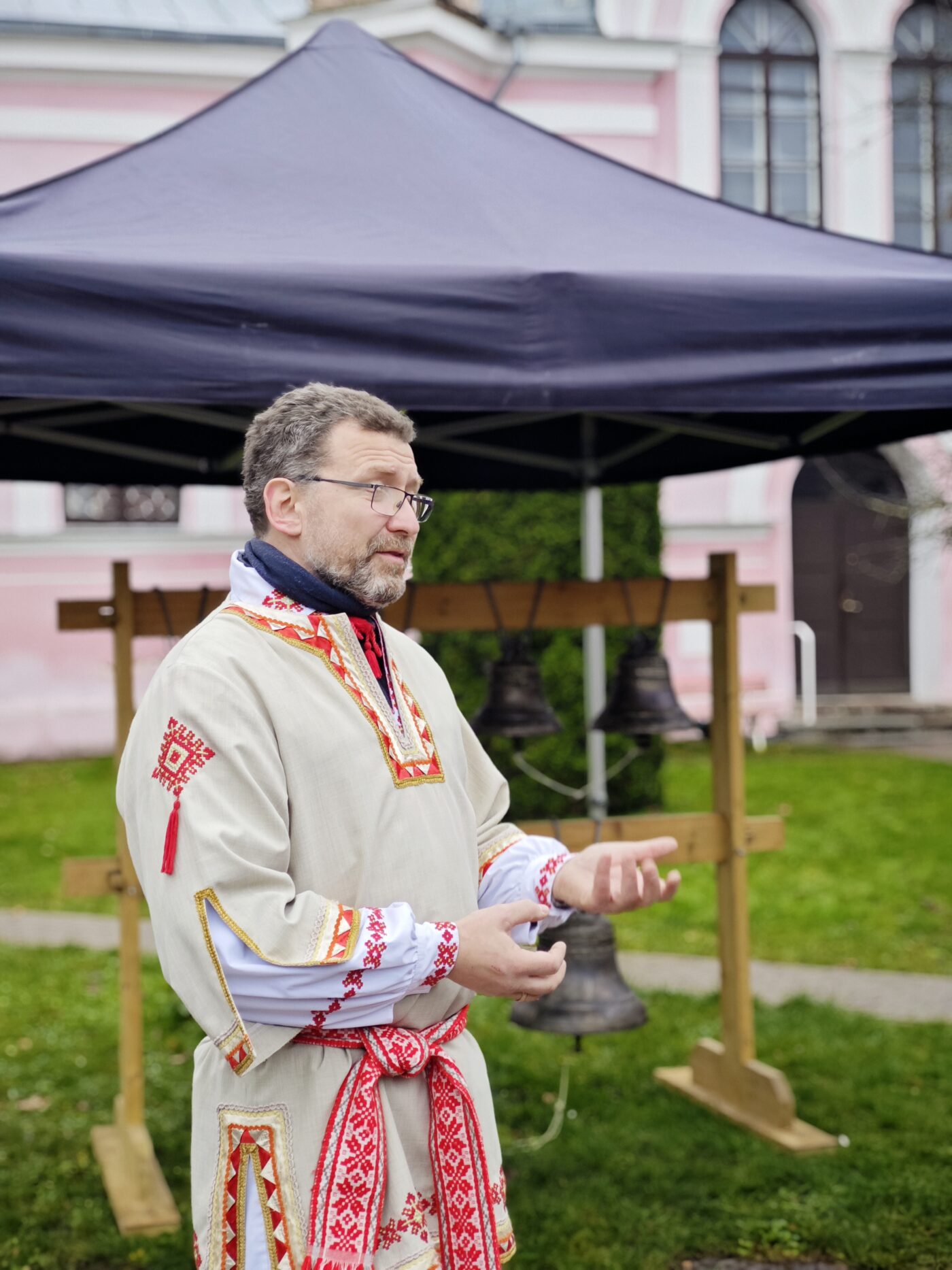 9 ноября, после воскресной литургии, у храма состоялся мастер-класс по колокольному звону и колокольный концерт. На переносной колокольне опытный звонарь и педагог Богдан Берёзкин (Германия) показал своё мастерство и рассказал об истории появления, видах и особенностях колокольного звона в разных странах. Затем все желающие могли сами попробовать позвонить в колокола. В это же время во дворе храма проходила небольшая благотворительная ярмарка, был предложен чай с пирожками, а также можно было приобрести книги по истории Православия в Эстонии, в том числе изданную весной 2025 года к юбилею прихода книгу “История православного прихода Св. Георгия в городе Тарту”.