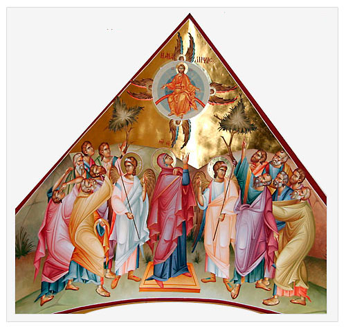 Вознесение Господне. Фреска в монастыре Преображения Господня на горе Фавор.