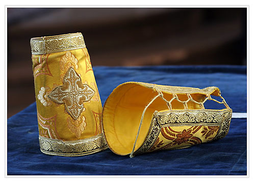 часть богослужебного облачения духовенства, полосы плотной ткани с крестами посередине и шнурами по краю, которые стягивают рукава у запястья. Надеваются с особой молитвой и знаменуют Божественную силу, действующую в священстве.