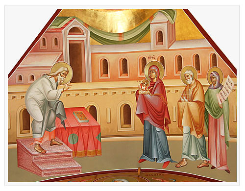 двунадесятый праздник, совершается на сороковой день после Рождества, 2 / 15 февраля. Установлен в память того, как Младенец Господь, согласно иудейскому закону в 40-й день принесенный Девой Марией в Иерусалимский храм, был встречен праведным старцем Симеоном, которому Духом Святым было предсказано, что он не умрет, пока не увидит Мессию (Лк 2,25-26). При этом Симеон взял Младенца Христа на руки, за что он именуется Богоприимцем, и свидетельствовал о том, что это и есть спасение Божие, то есть, Иисус Христос, Мессия (Лк 2,28-32).